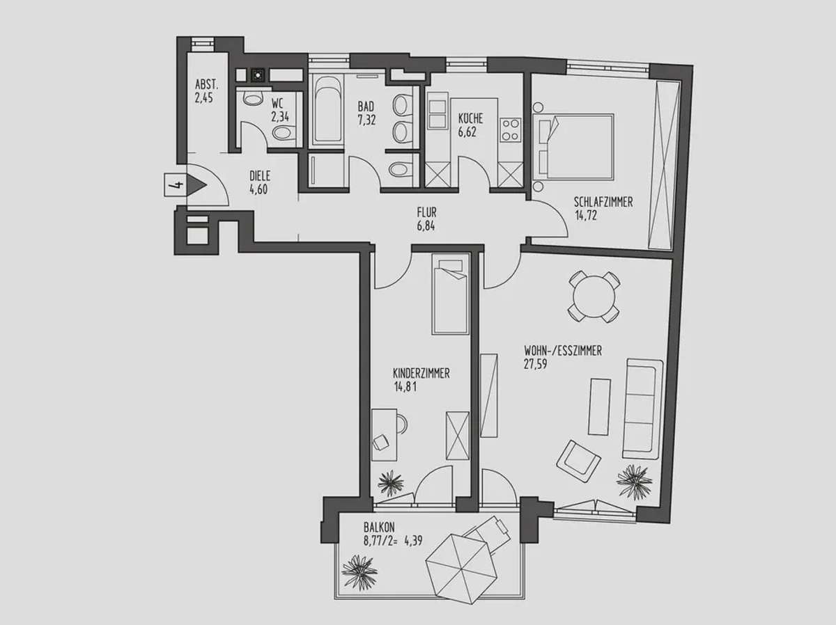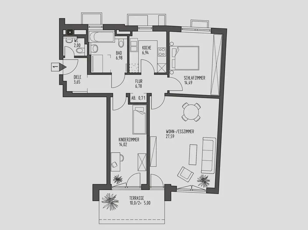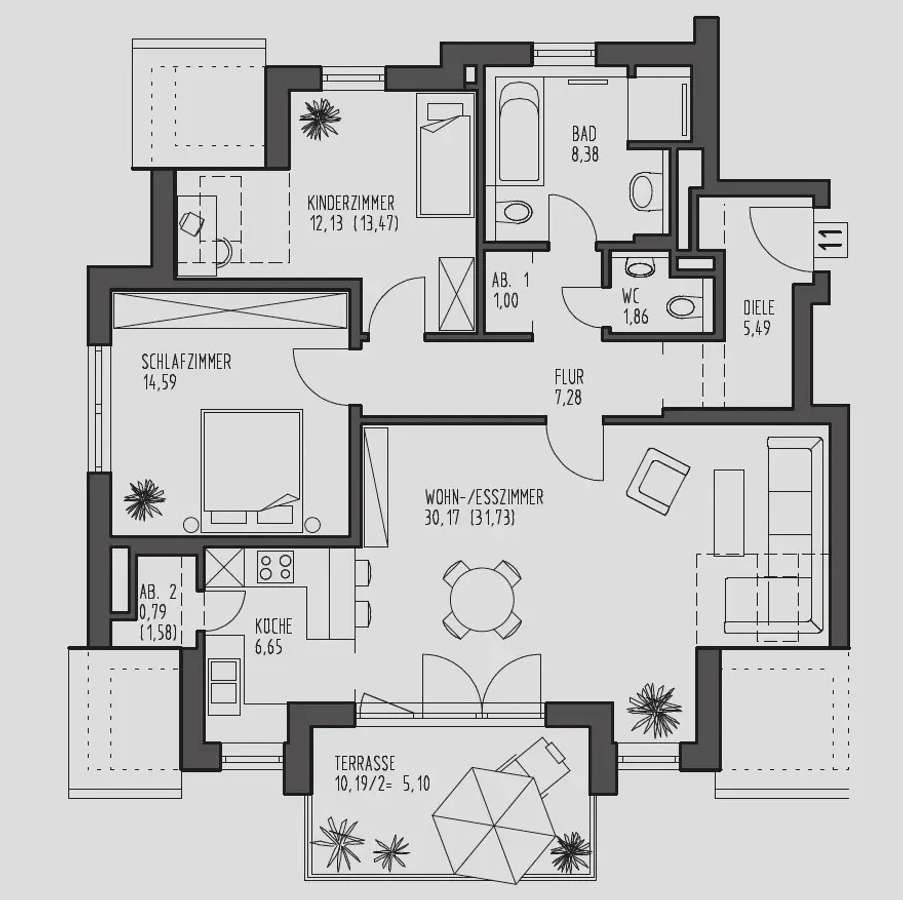 Wohnfläche: 91 m²